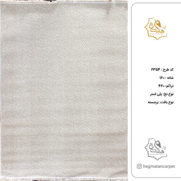 فرش هگمتان 160شانه کد 2354 و تراکم 460 نوع نخ پلی استر هایبالک است که مطابق با سلیقه روز طراحی و تولید گردیده است بافت متفاوتی دارد